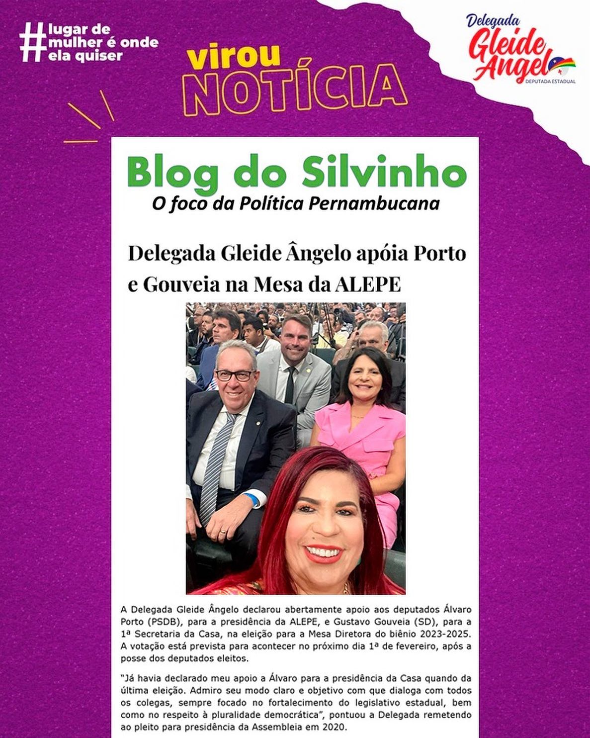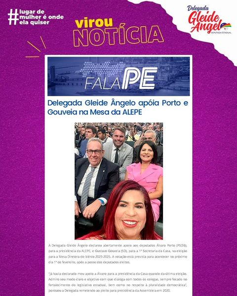🟣 Estou declarando meu apoio às candidaturas dos meus colegas Álvaro Porto e Gustavo Gouveia para a presenceia e a primeira secretaria da Mesa Diretora da Alepe, respectivamente, nas eleições do próximo dia 01;
