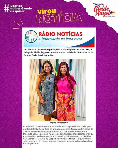 🔹 Em minha primeira agenda já empossada para nosso segundo mandato, fiz questão de me reunir com a Secretária de Defesa Social, Carla Patrícia, para falarmos sobre a melhoria da segurança pública em nosso estado; 🔸 Vamos recomeçar toda a negociação relativa ao recompletamento das polícias. Hoje, só na PM há uma defasagem de 3 mil policiais com relação a 2019. Na Polícia Civil, a situação não é diferente — e isso inviabiliza a abertura de delegacias em plantões noturnos e nos finais de semana, por exemplo; 🔹 Também falei sobre a necessidade da criação e expansão dos Departamentos de Polícia de Proteção à Criança e ao Adolescente, assim como do Idoso. Em todo Estado, existem apenas três Delegacias de Proteção à Criança e ao Adolescente, todas na RMR (Recife, Jaboatão e Paulista) e só há uma delegacia específica para a Proteção da Pessoa Idosa; 🔸 Como cidadã pernambucana, Delegada de Polícia e Deputada Estadual, vou seguir trabalhando e batalhando por um Estado mais seguro para todos e todas!! 🚔🚓👏🏼👏🏼👏🏼 #segurancapublica #pernambuco #concursopublico #pernambucopelavida
